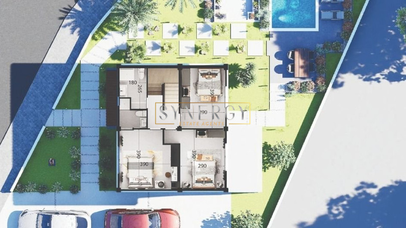 The house is a part of a residential complex and it consists a spacious open-plan living room, dining area, and fully equipped kitchen, along with a guest bathroom. Upstairs, there are three comfortable bedrooms, including a master with en-suite facilities, and a modern family bathroom.