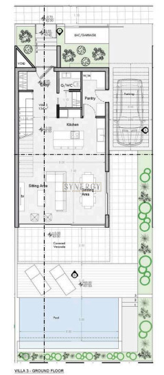 The house will consist of an entrance hall, a living room, a dining area, a kitchen with an island, a pantry, a storge room and a guest toilet on the ground floor. On first floor, there will be three bedrooms - the main with ensuite facilities, a family bathroom and a balcony with beautiful sea view.