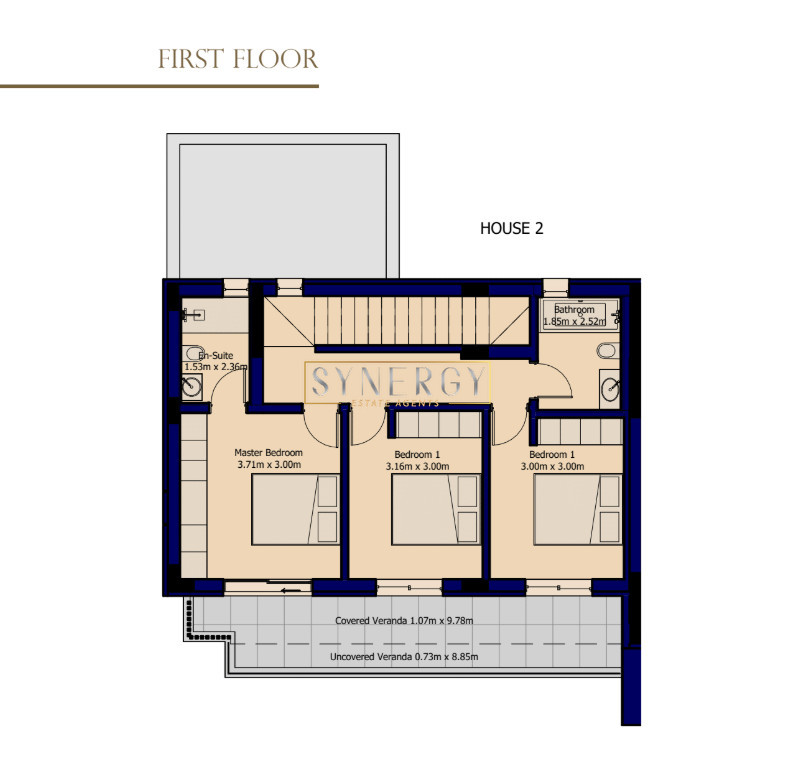 The house will consist of a large open-plan living room/ dining area/ kitchen, and a guest toilet on the ground floor. On the first floor there will be three bedrooms - the main with a large walk-in closet & ensuite facilities, a main bathroom and verandas.