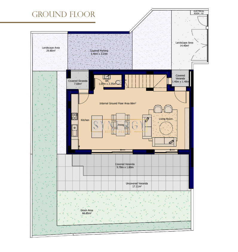Externally, there will be two parking spaces, large covered/ uncovered verandas and a large garden.